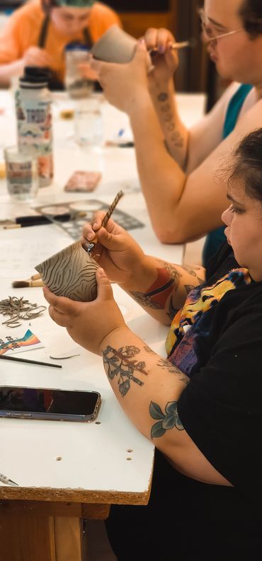 Our pottery classes are designed to offer a range of commitment options to fit your needs. Bite-sized classes are two-hour, one-day sessions that provide an introduction to a specific topic, while our 2-8 week courses offer a more in-depth exploration of the craft. Pottery is a lifelong creative journey, and while no course will make you a master overnight, they will provide you with the skills and momentum to begin or continue your artistic path. A pottery workshop grants you space in our electric kilns and all the clay you need at no additional charge. By booking a workshop you have agreed to our cancellation policy. Our studio is dedicated to fostering your creativity and helping you flourish. With hands-on experience and personalized guidance, you’ll develop your skills and bring your pottery creations to life. Come create with us!